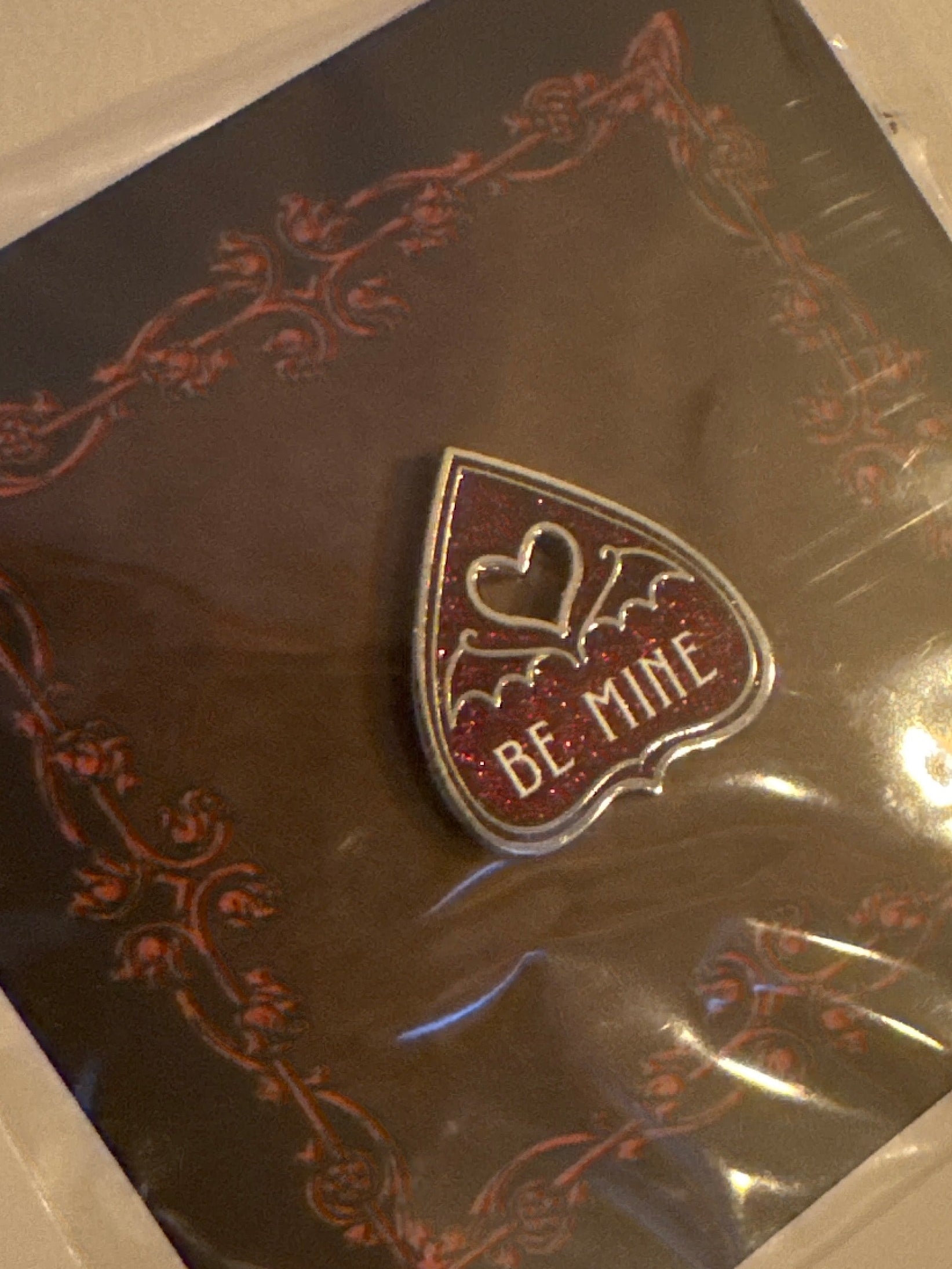 Valentines Planchette mini pins! Inspired by candy hearts, these are a spooky twist on those chalky delights.