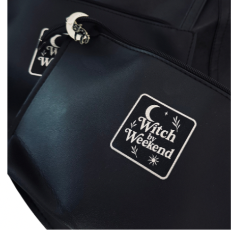 - 🖤 Witch by Weekend faux leather zip pouch with patch logo